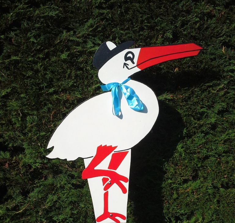 Huur deze super raam ooievaar bij de geboorte aankondiging van een baby.