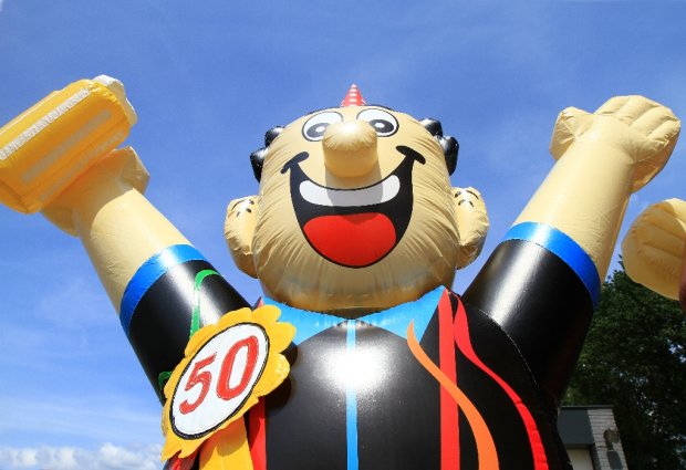 De Klussende Abraham huren bij een jubileum zoals 25 jaar, 40 jaar, 50 jaar of 60 jaar. De Abraham is te huur met verschillende banners: