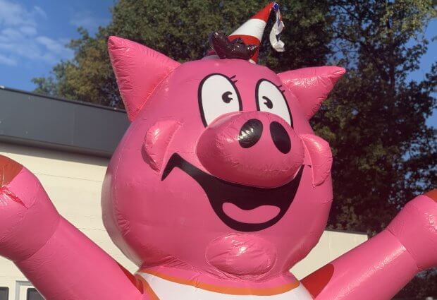 Het prachtige roze Feestvarken is te huur bij elk jubileum van 1 jaar tot 99 jaar.