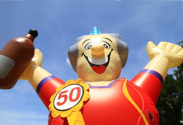 De Tuinierende Sarah huren bij een jubileum zoals 25 jaar, 40 jaar, 50 jaar of 60 jaar. De Sarah is te huur met verschillende banners:
